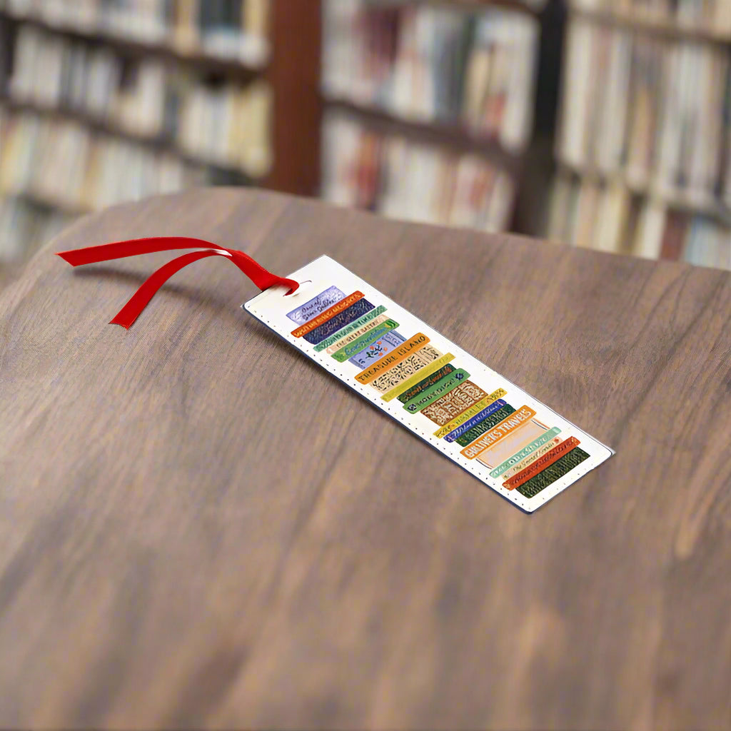 Never lose your spot with this illustrated Book Club bookmark from Rifle Paper Co, featuring a stack of classic titles and a grosgrain ribbon tie.