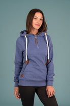 Stay warm and stylish in the Ivy Half Zip Up Hoodie from Wanakome. This mineral blue hoodie features an adjustable hood and vegan leather accents for a versatile and trendy look.
