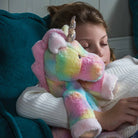 Marshmallow Zoo Big Fro-Yo Unicorn features a super soft, pastel rainbow sherbet fabric, a pink mane and tail, a soft padded metallic gold horn and matching foot pads, and plastic eyes. Kids love to hold and snuggle up to Marshmallow Zoo soft toys.