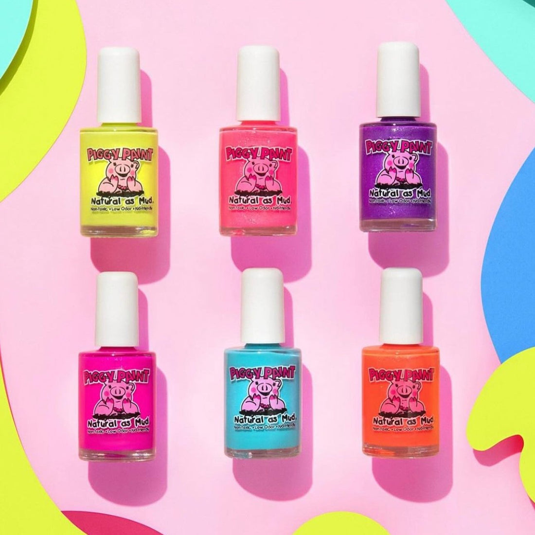 Get ready to sparkle with Neon Coral Shimmer nail polish from Piggy Paint.