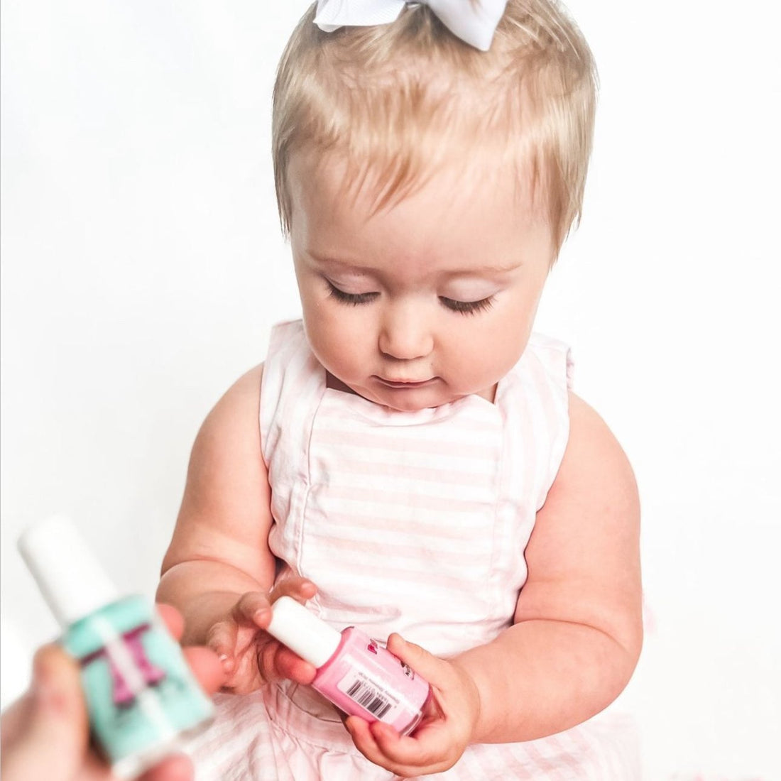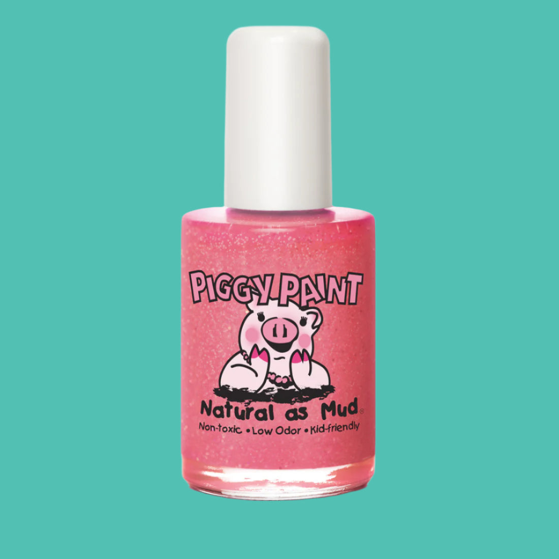 Shimmy Shimmy Pop and paint your nails with Piggy Paint Nail Polish! This bright pink shade with glitter will make your hands stand out. Two to three thin coats is all you need for a fun and vibrant look.