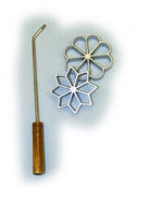 This set features a long, chrome plated, wood gripped handle complete with two, 3″ polished cast aluminum shapes, a star & a flower. Made in USA.