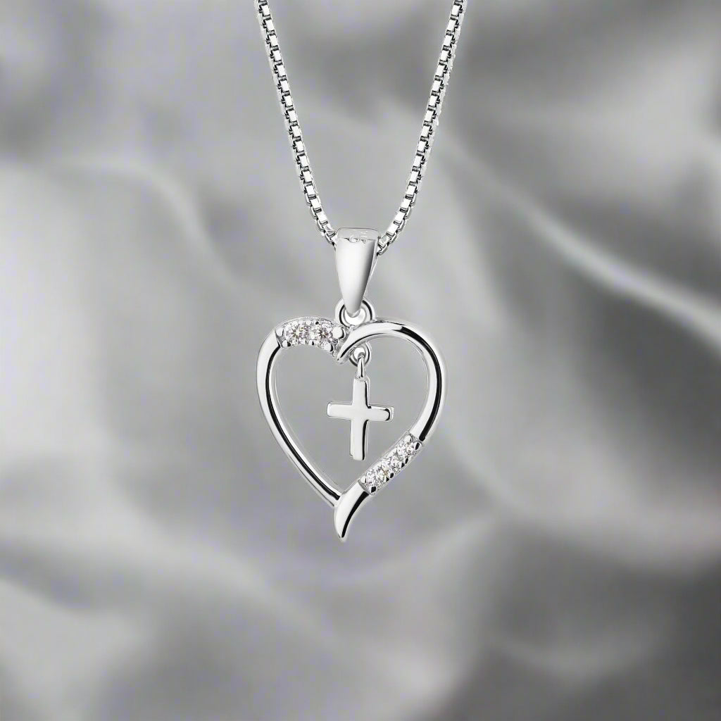 Dancing Cross Sterling Silver Children's Cross Heart Necklace | Cherished Moments