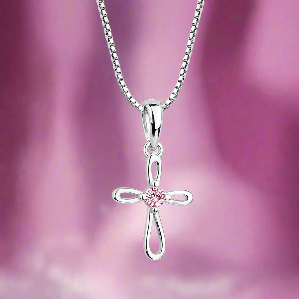 Pink Stone Children's First Communion Sterling Silver Cross Necklace | Cherished Moments