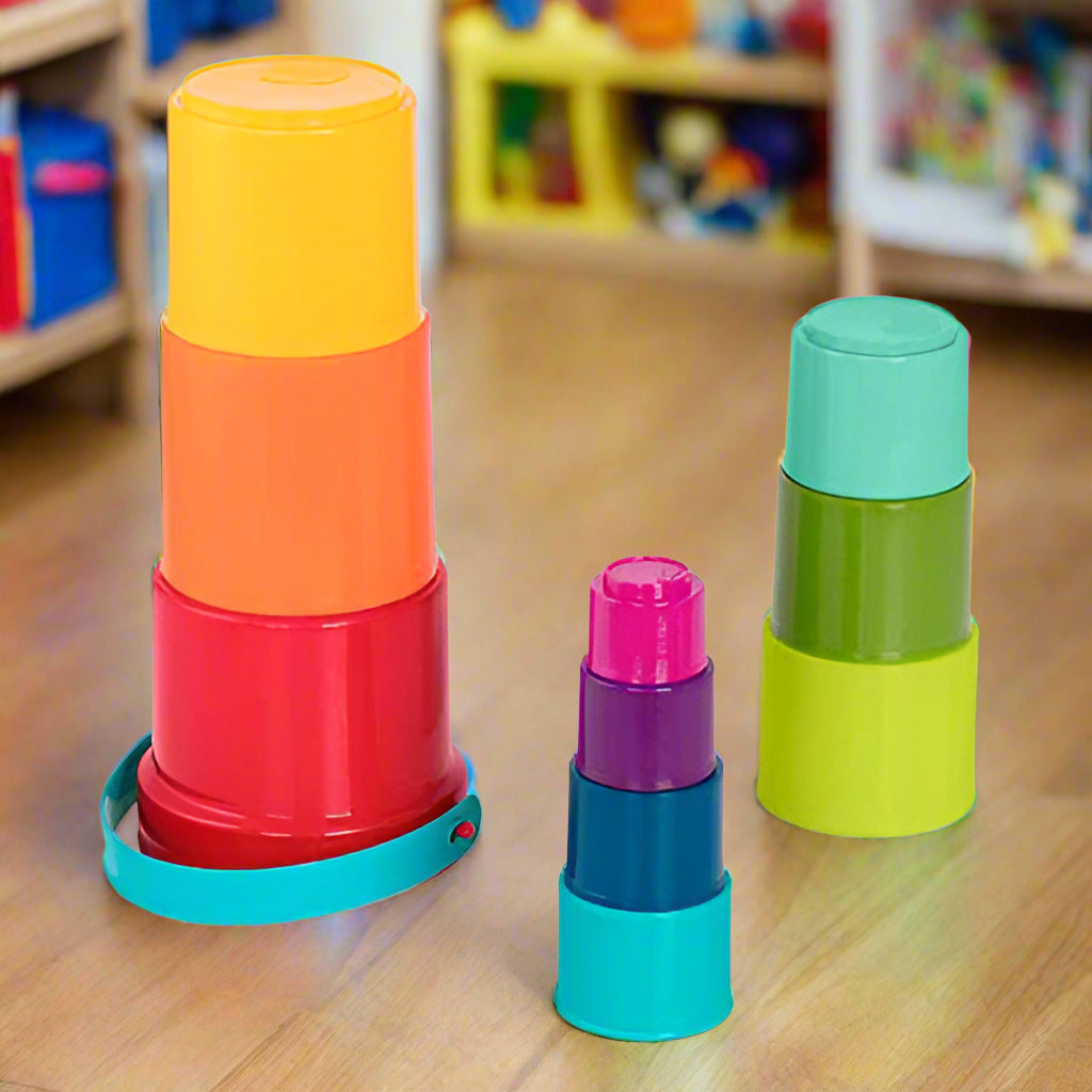 Your little one will spend hours stacking, sorting, building, and knocking down our Battat Stacking Cups. Perfect for helping improve hand-eye coordination and practicing sizes, colors, and numbers, these colorful and classic toddler stacking cups are both educational and fun.