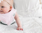These stylish drool bibs are made of 100% absorbent cotton on the front and 100% polyester fleece on the back. The front of the baby bib is a stylish knit fabric and the back is a super soft fleece that keeps your baby completely dry even with the drooliest of babies. Great for teething babies!