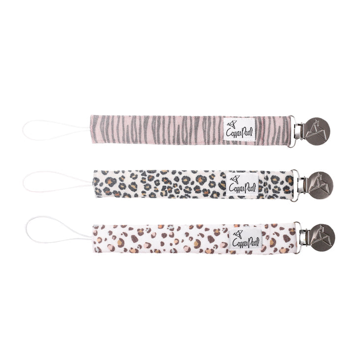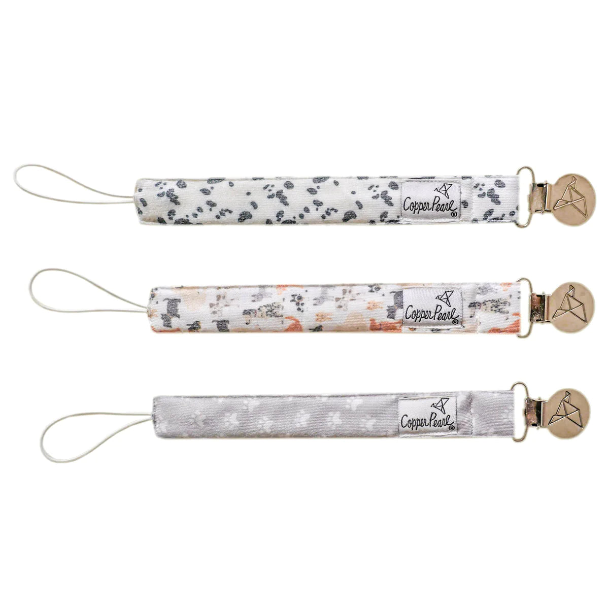 Premium Quality & Secure Design Crafted with soft, breathable knit fabric, Copper Pearl's Binky Clips are gentle on your baby’s skin while keeping their pacifier securely in place. The strong stainless steel clip ensures the pacifier stays attached to your baby’s clothing, reducing the chances of it getting lost or dropped.