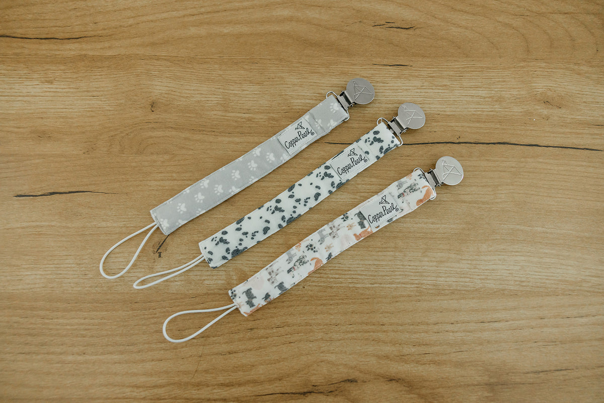 Premium Quality & Secure Design Crafted with soft, breathable knit fabric, Copper Pearl's Binky Clips are gentle on your baby’s skin while keeping their pacifier securely in place. The strong stainless steel clip ensures the pacifier stays attached to your baby’s clothing, reducing the chances of it getting lost or dropped.
