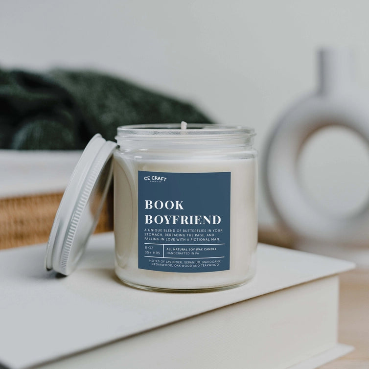 Book Boyfriend Candle, 8 oz | Book Gifts, Glass Candle with Metal Lid