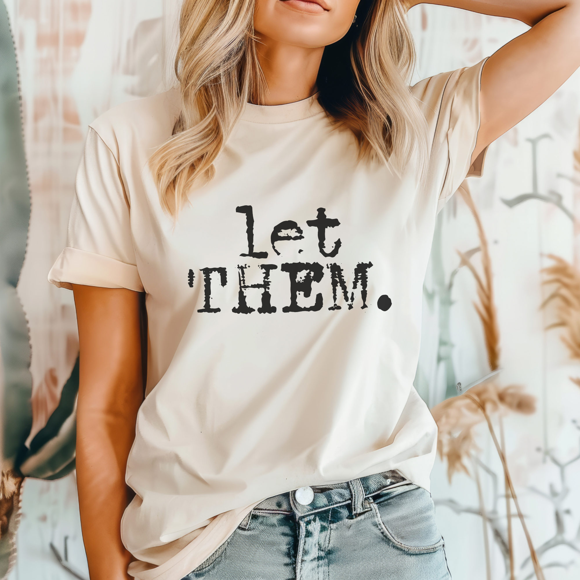 Unlock your potential with the power of simple words and a bold fashion statement. The Let Them Distressed Graphic T-Shirt based on "The Let Them Theory" collection by Mel Robbins is a reminder to let go of limitations and embrace a happier, more successful, and more loving life.