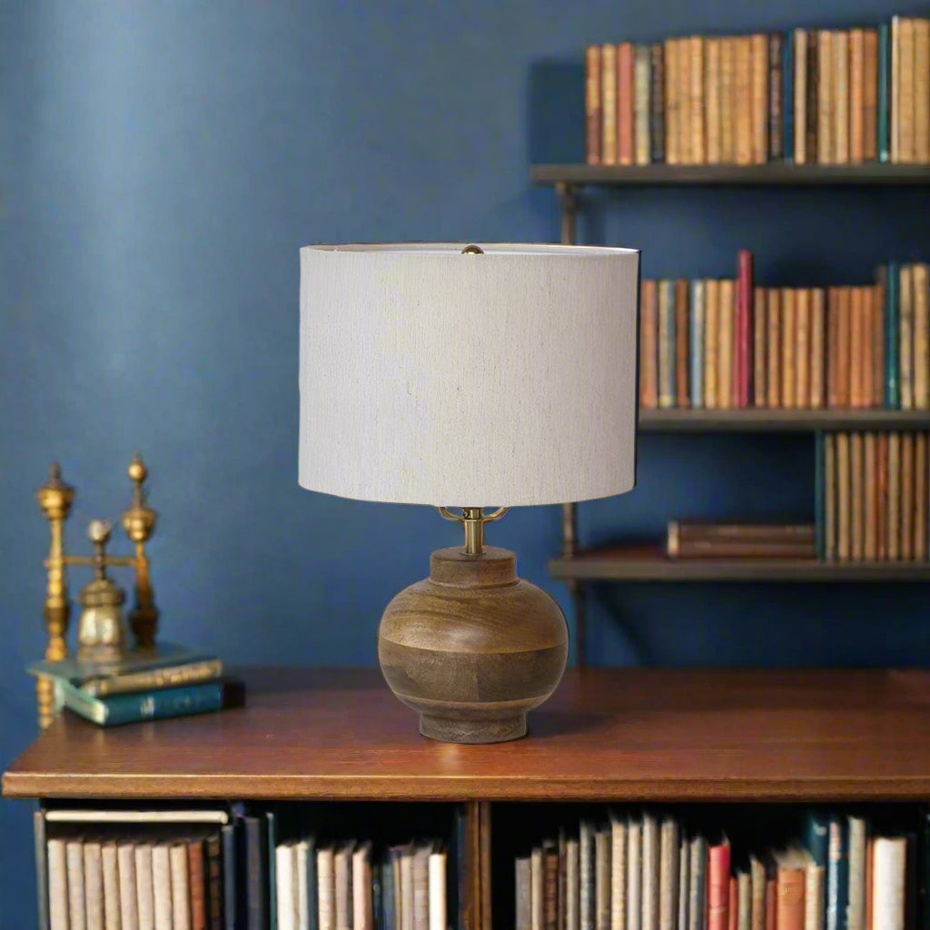 Enhance your home decor with this elegant Mango Wood Table Lamp featuring a cotton shade.