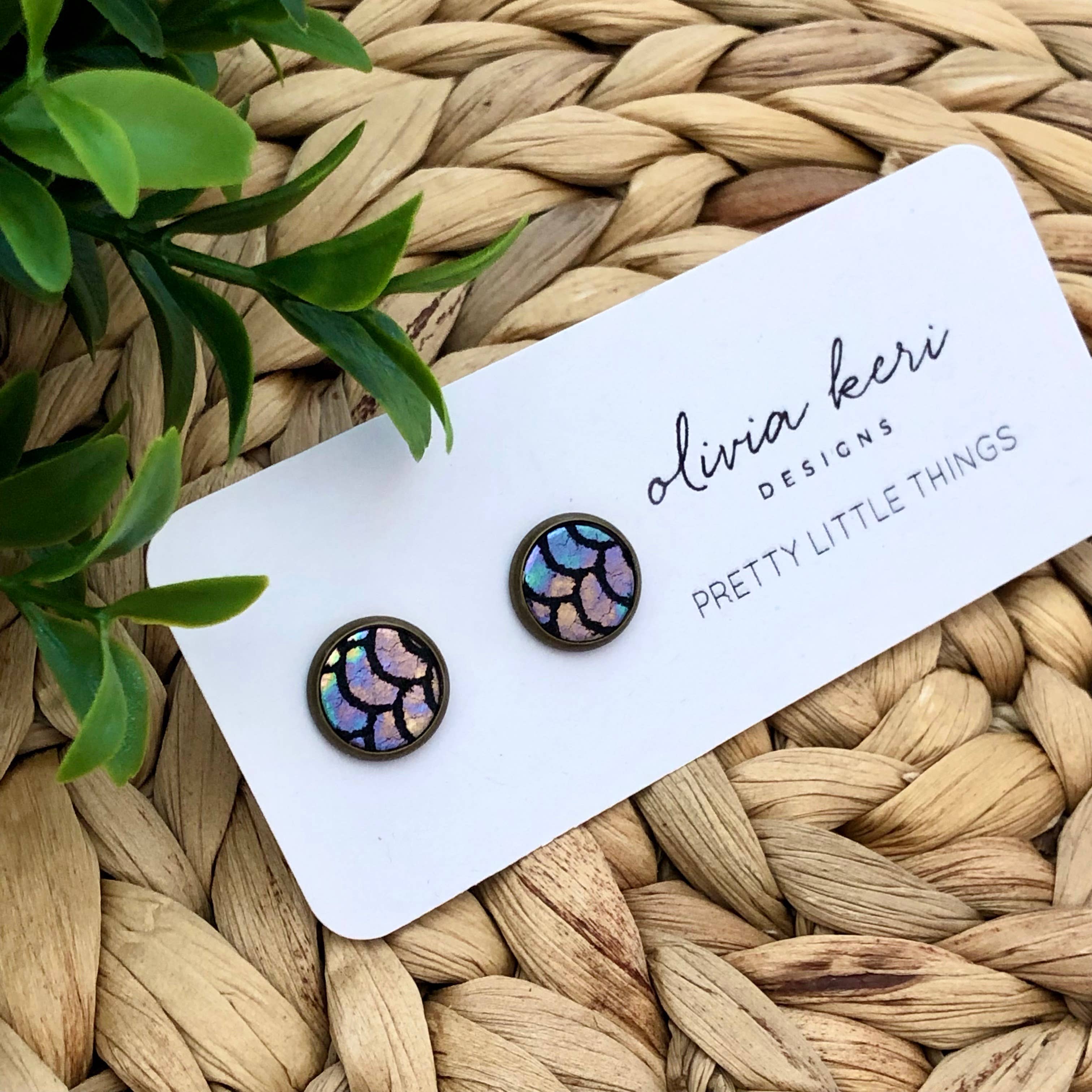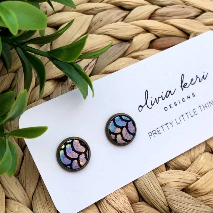 Pretty Little Things Studs - Mermaid Scales: Antique Bronze Setting