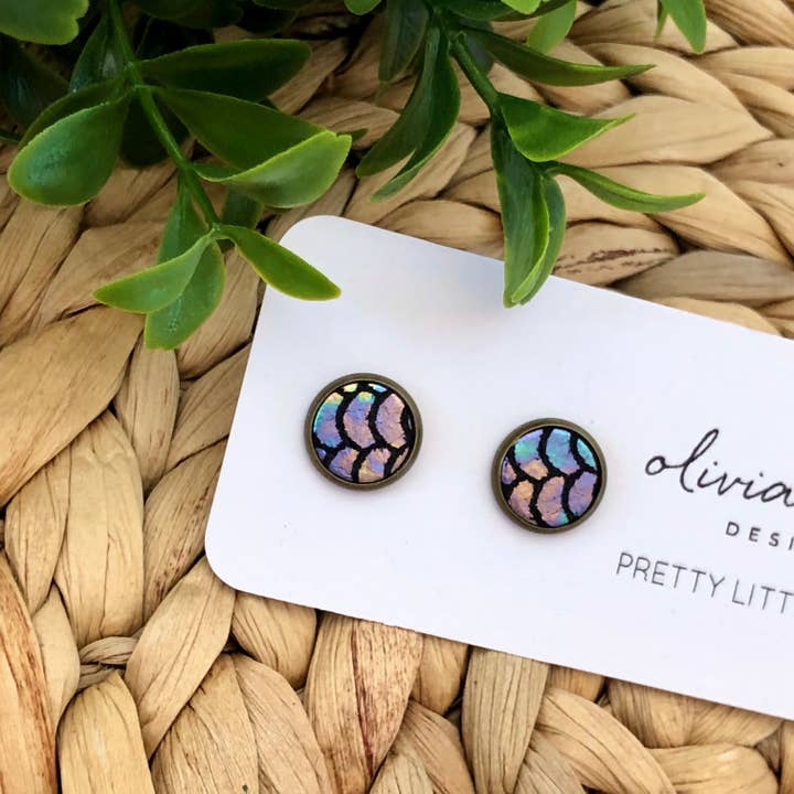 Pretty Little Things Studs - Mermaid Scales: Antique Bronze Setting