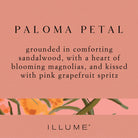Paloma Petal from Illume is grounded in comforting sandalwood, with a heart of blooming magnolias, kissed with pink grapefruit spritz.