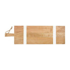 Great for serving or display, this board is the perfect addition to any kitchen. Natural wood board with handle.