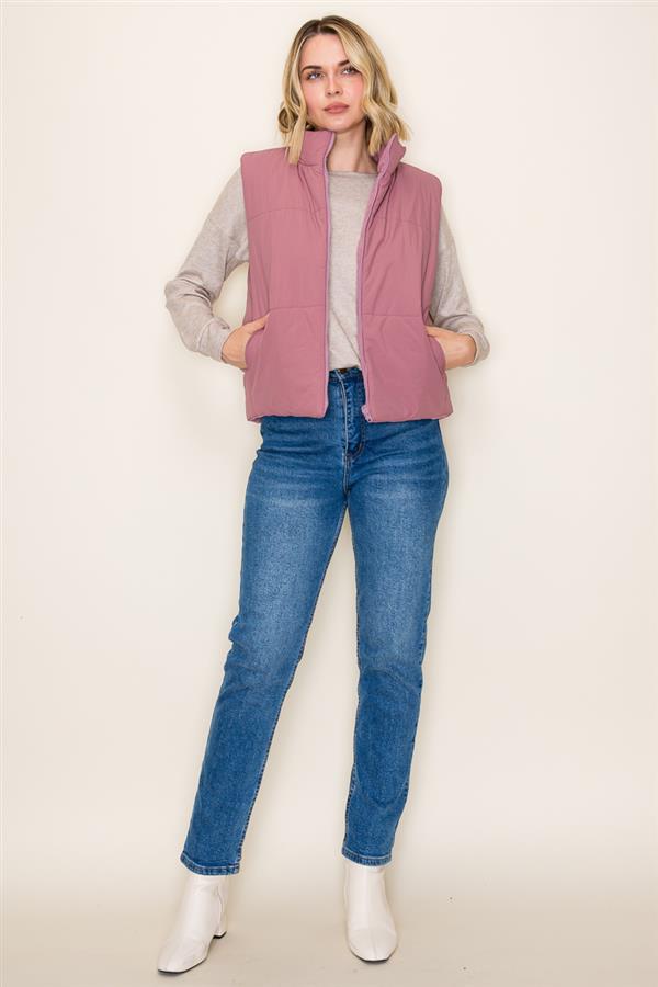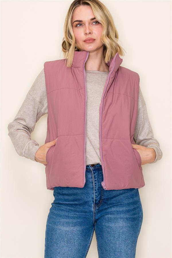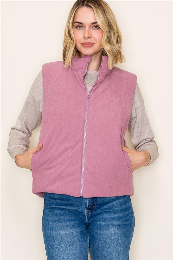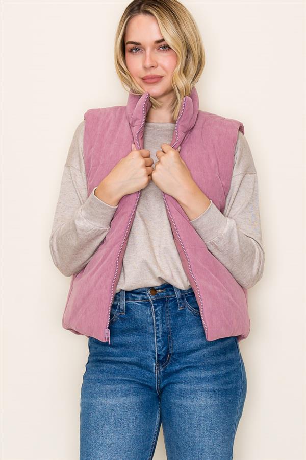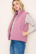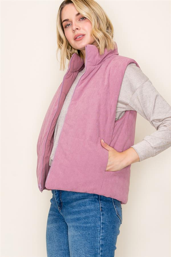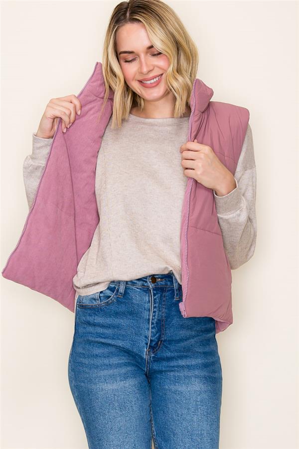 Corduroy Reversible Puffer Vest w/ Pockets, Rose | Staccato