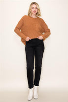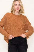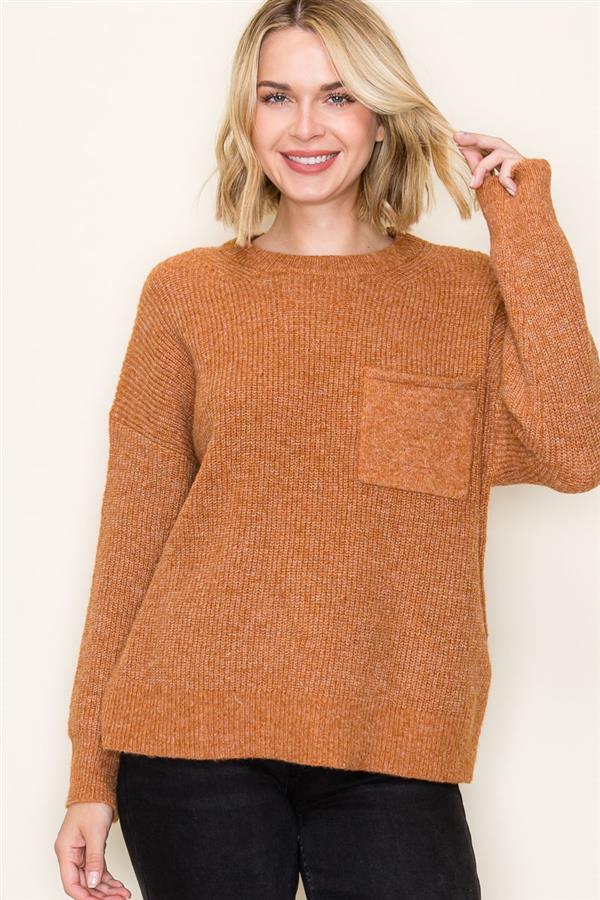 Crew Neck Long Sleeve Oversized Sweater w/ Chest Pocket, Camel | Staccato