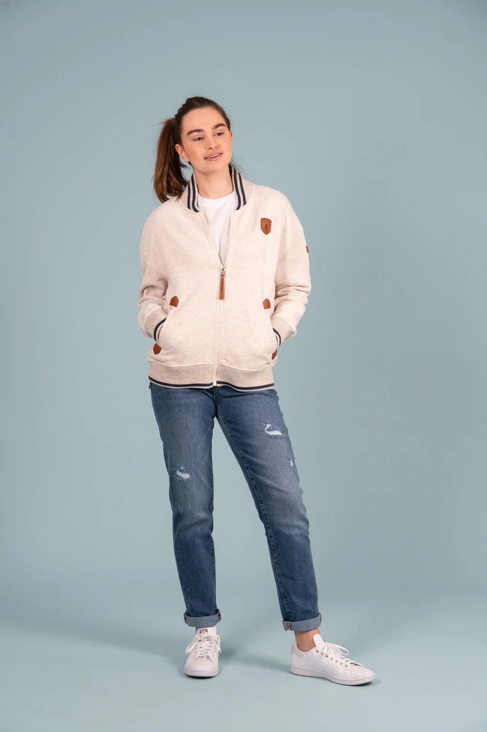 Henlie Zip Up Bomber Jacket, Heather Oatmeal | Wanakome