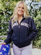 This Lakegirl Full Zip Sweatshirt in navy combines comfort and style effortlessly.
