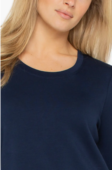 This long sleeve scoop neck top in dark navy offers a perfect blend of comfort and style.