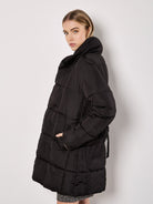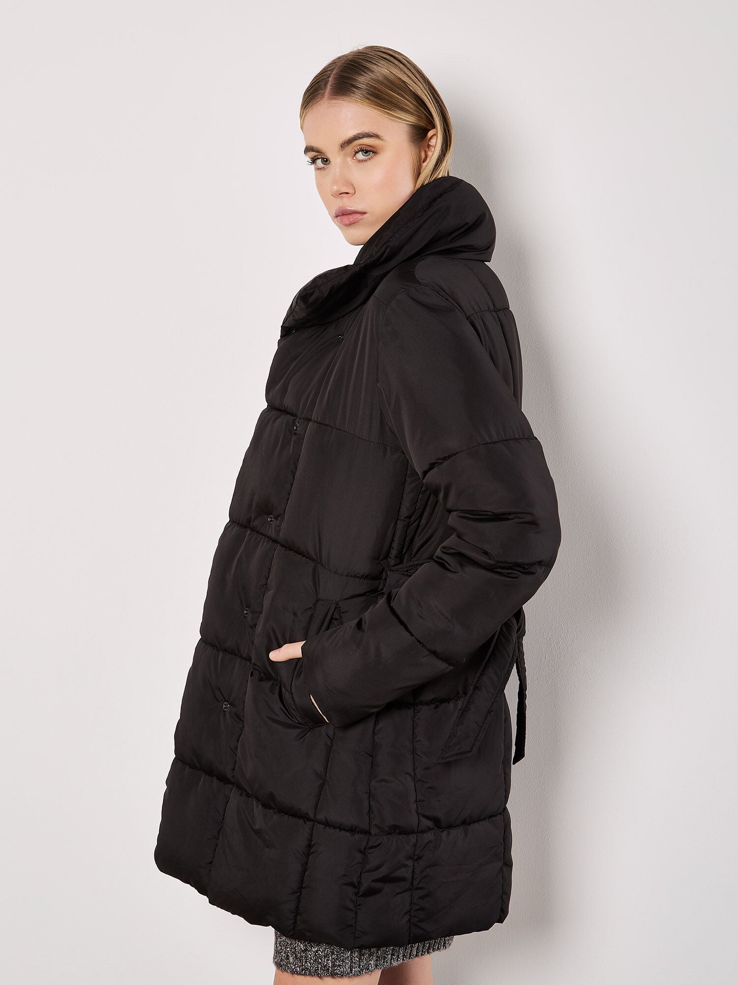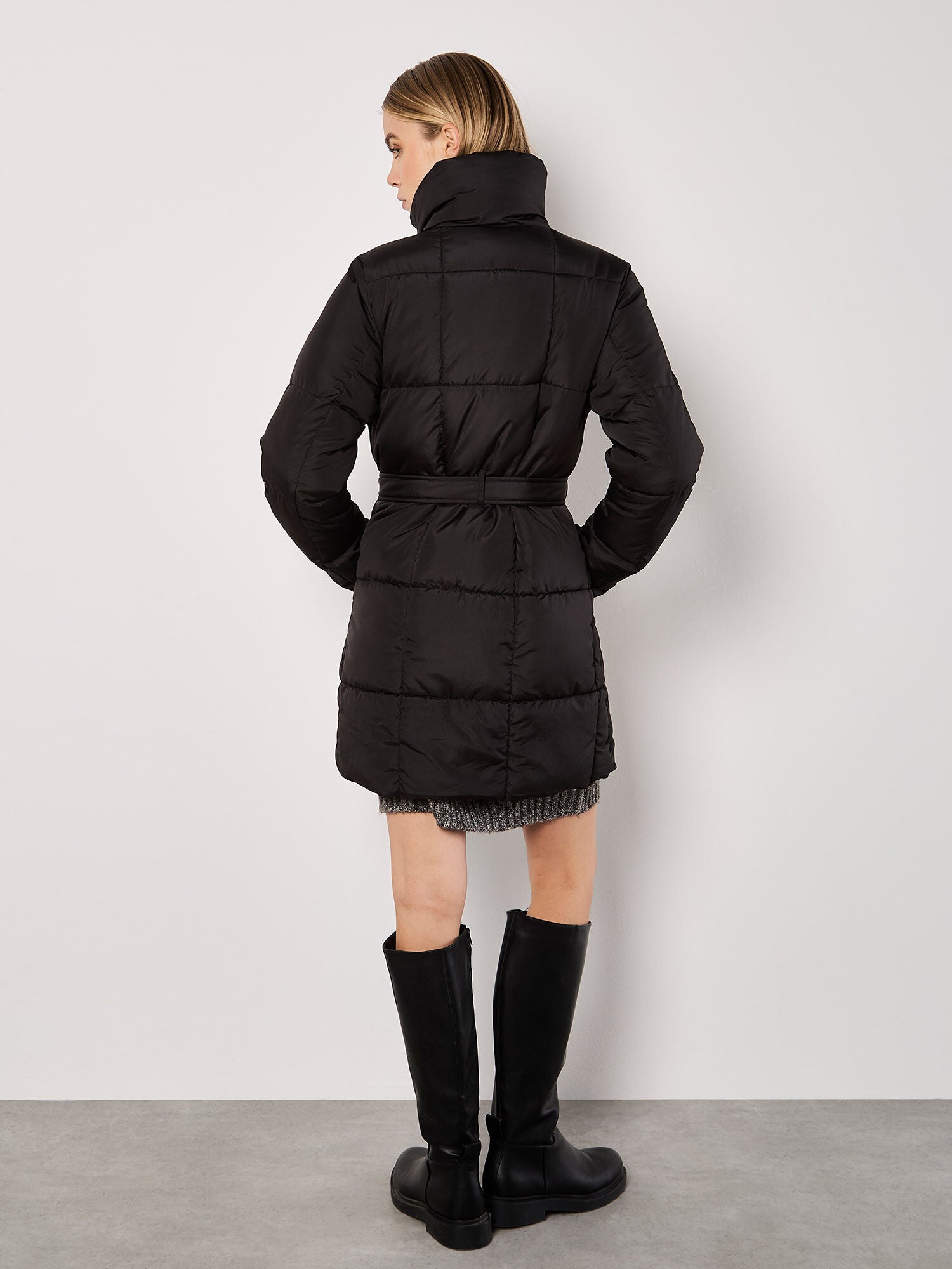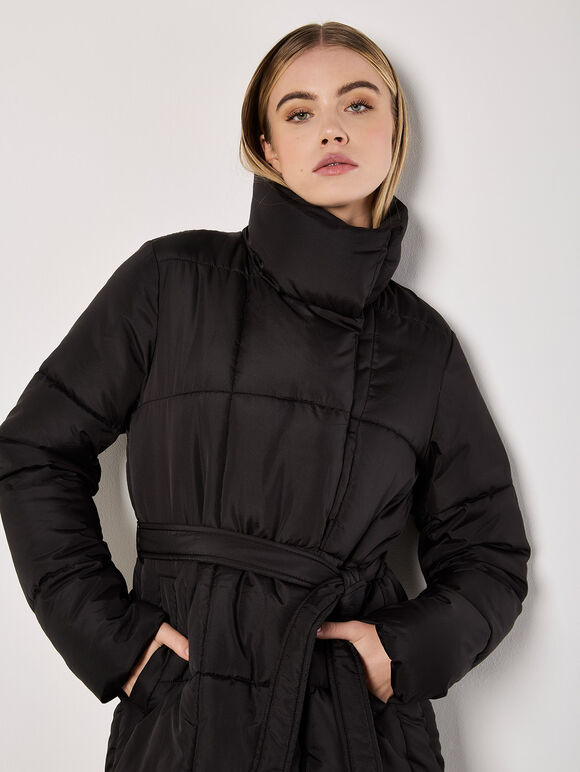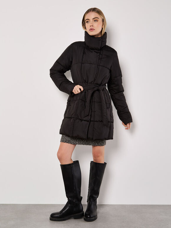 Keep the cold at bay with this classic quilted puffer jacket. Lined for comfort, it features a collared neckline, practical pockets, a snap-button fastening, plus a fabric belt to create a flattering silhouette.