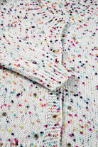 This Rhinestone Multicolor Confetti Sweater Cardigan in white combines playful charm with everyday versatility.