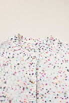 Featuring a vibrant confetti pattern and sparkling rhinestone details, it adds a lively touch to any outfit.