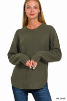 Round Neck Basic Sweater, Dark Olive