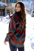 Shacket w/ Pockets, Rust & Green Tartan Plaid | Fornia