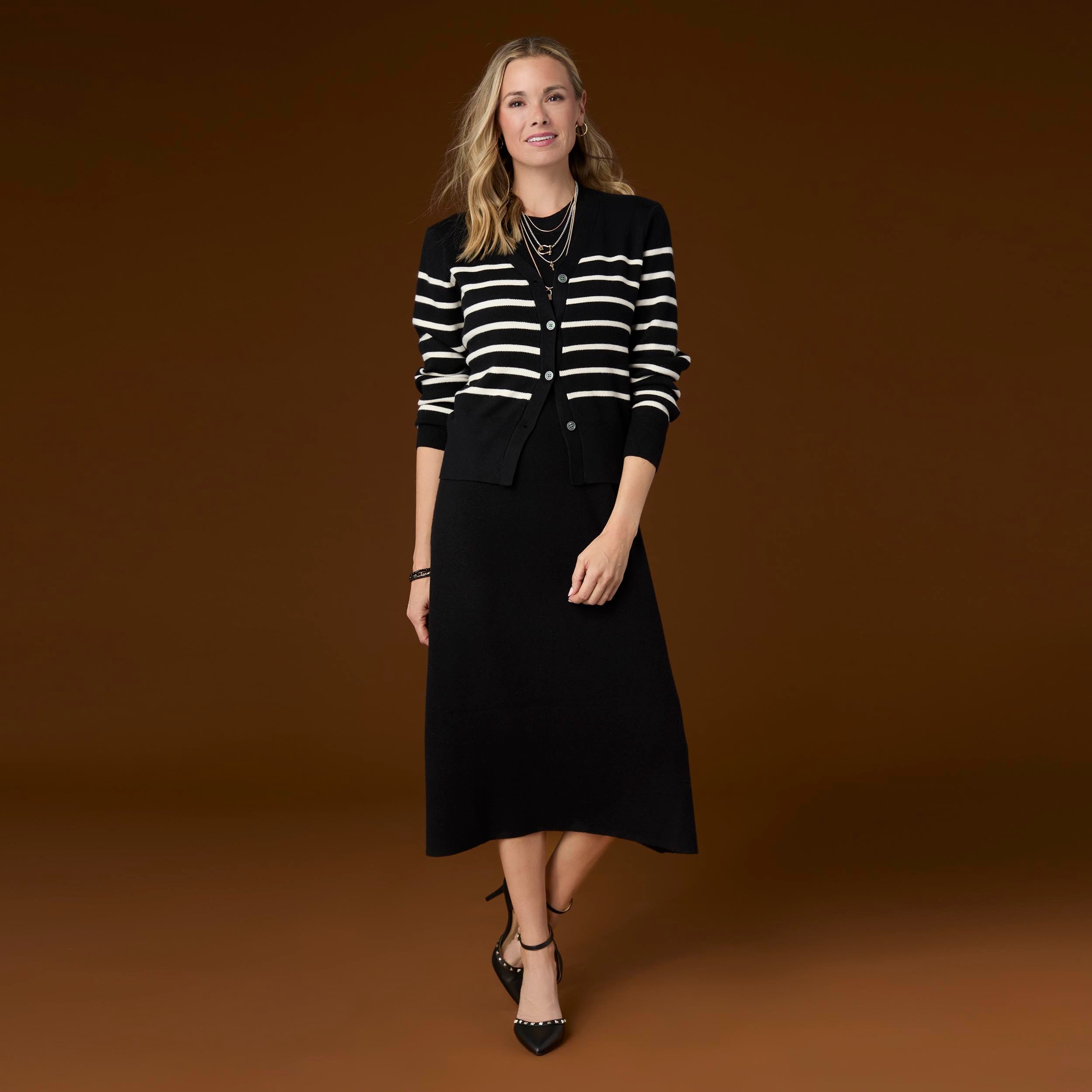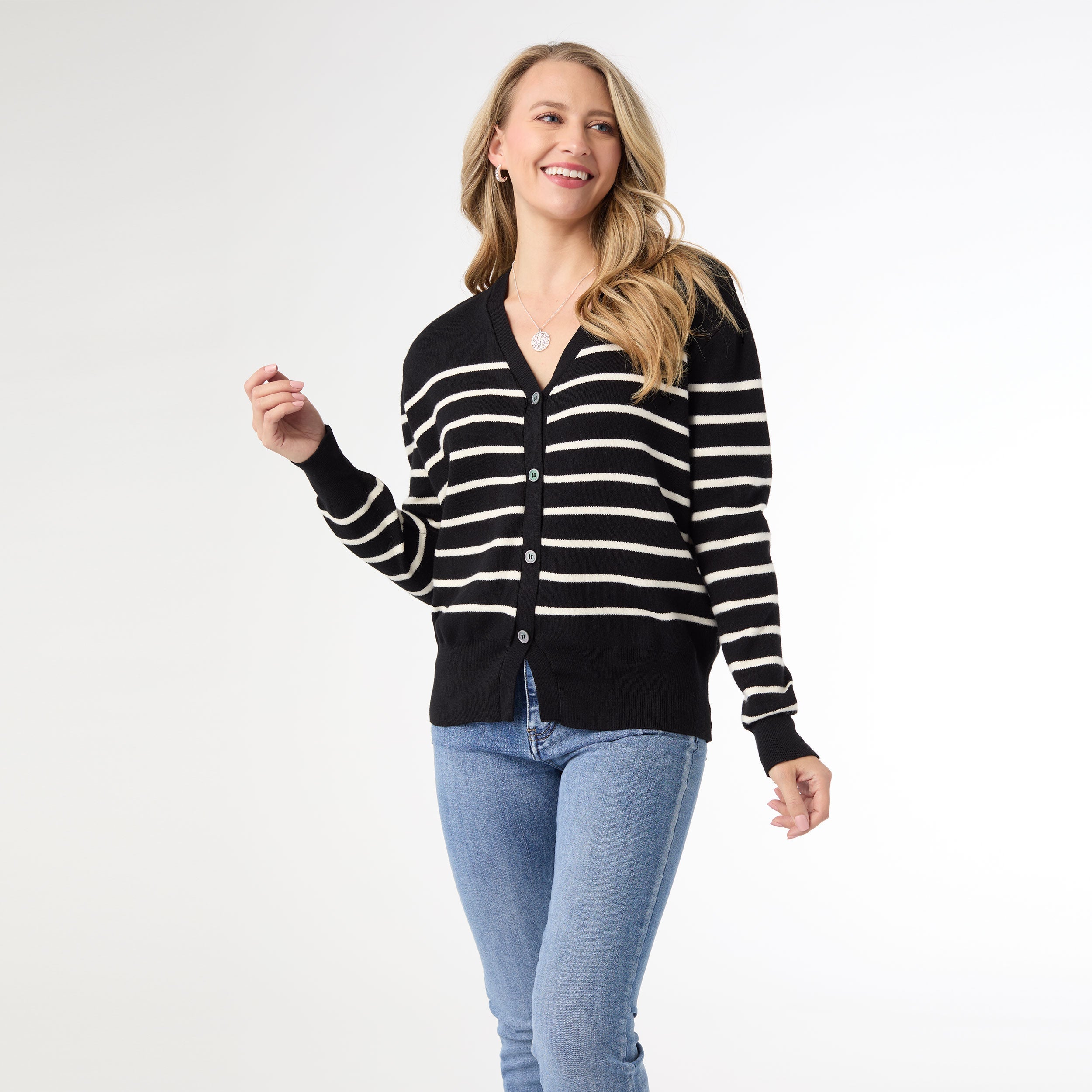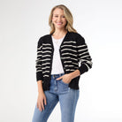 White Striped Button Down Cardigan, Black | Coco + Carmen