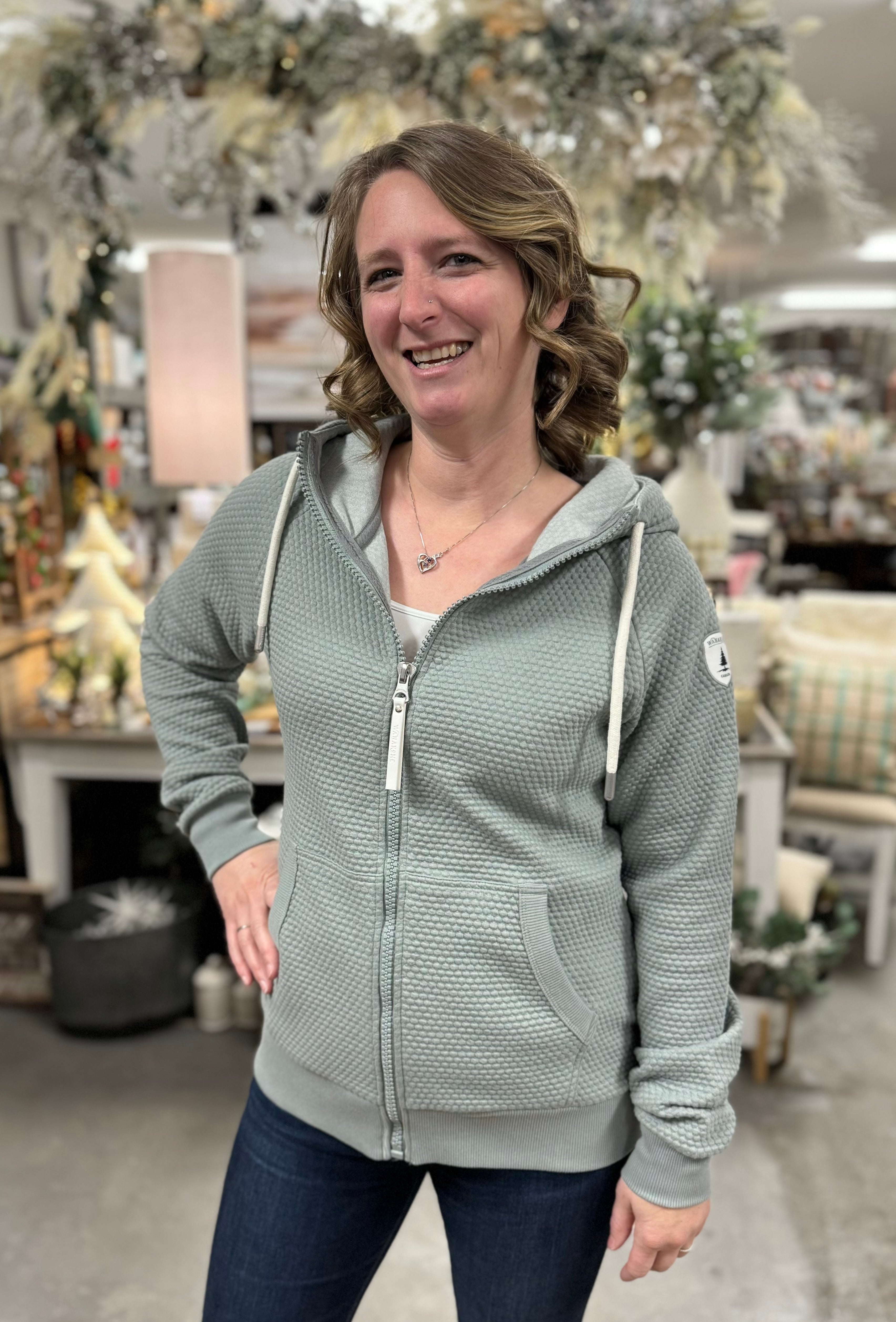 Wrap yourself in luxury with the Hestia Zip Up Hoodie by Wanakome. Made from soft French terry fabric, this hoodie features a full-length front zipper and a bubble-texture fabric.