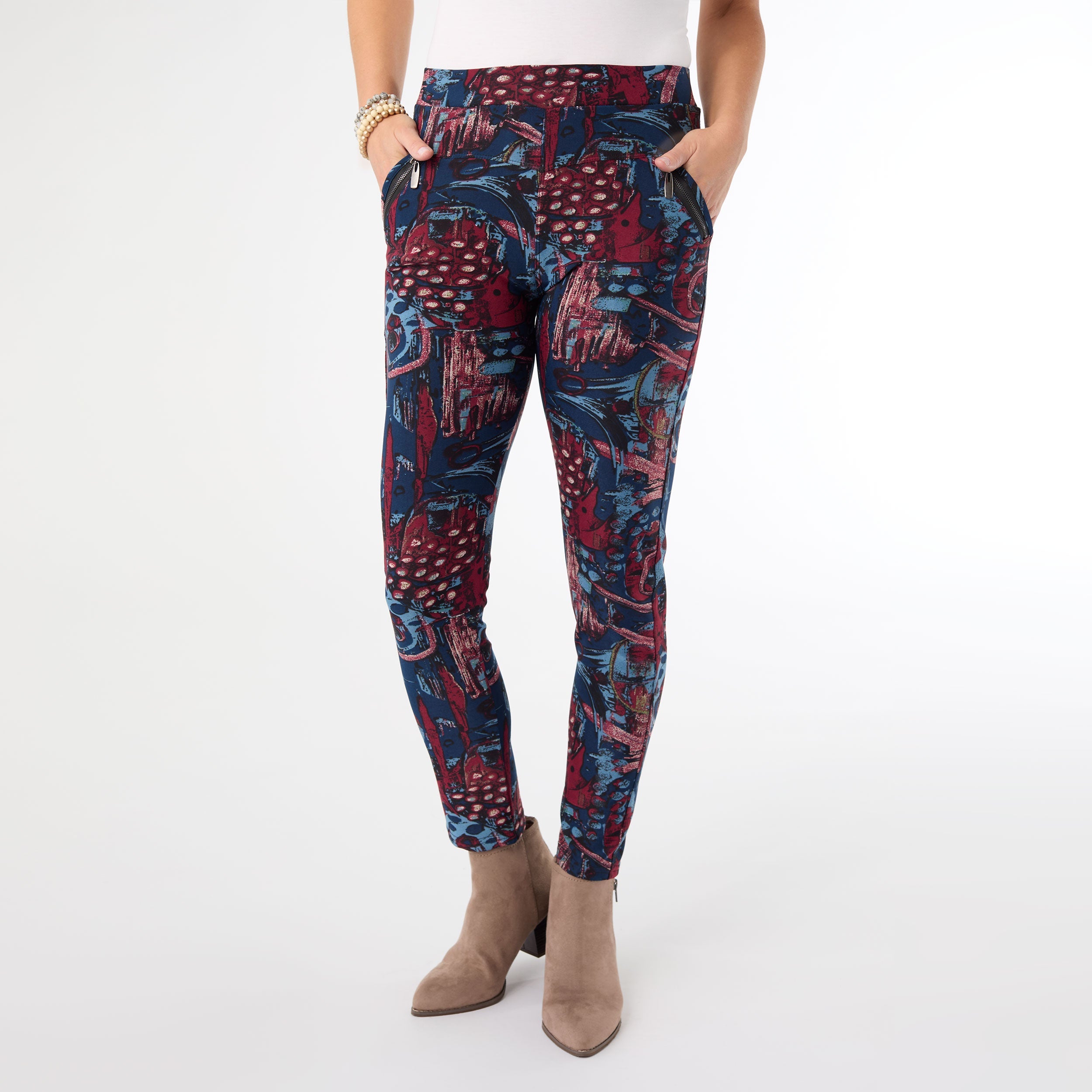 Printed Zip Pocket Leggings, Merlot & Navy | Coco + Carmen - SALE