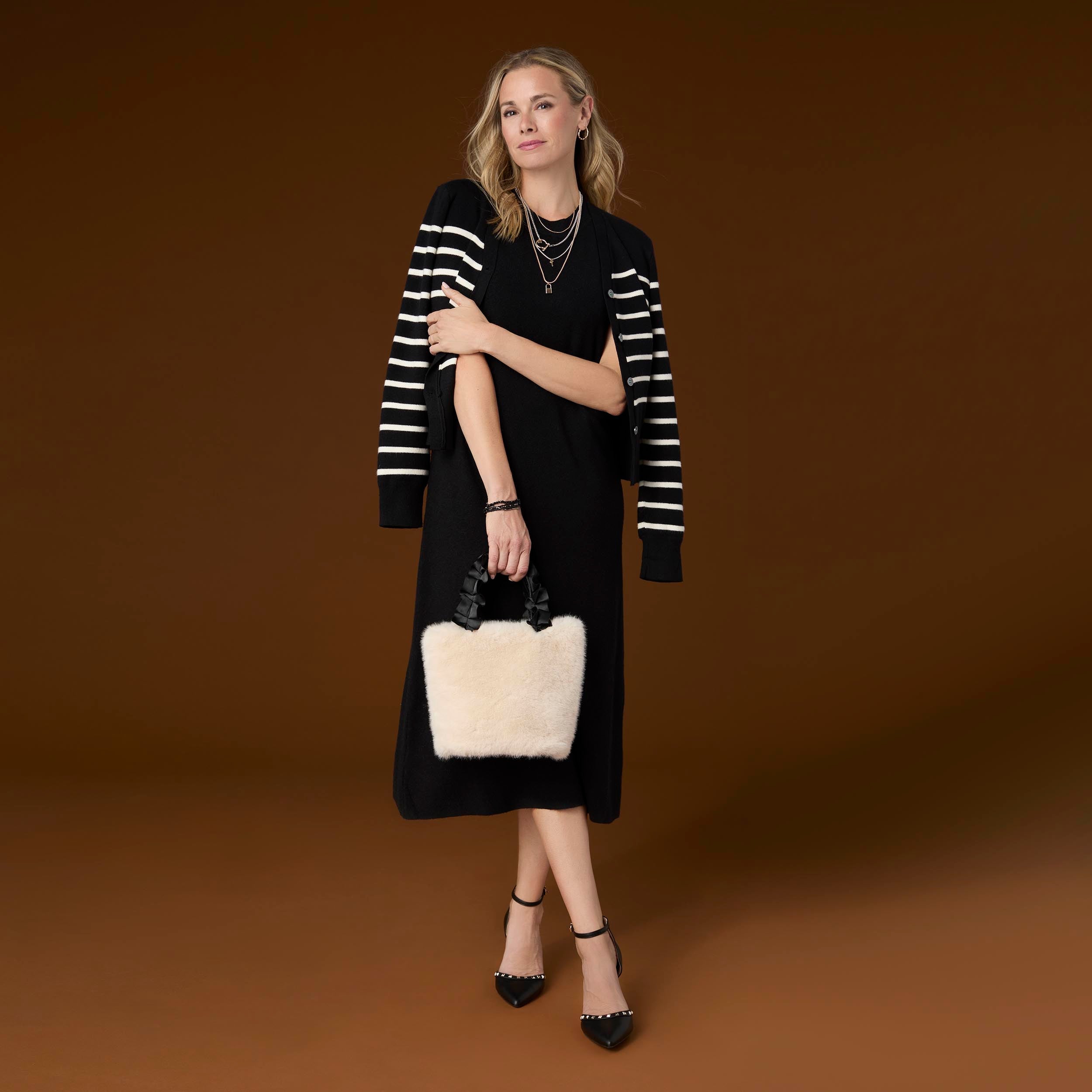 White Striped Button Down Cardigan, Black | Coco + Carmen
