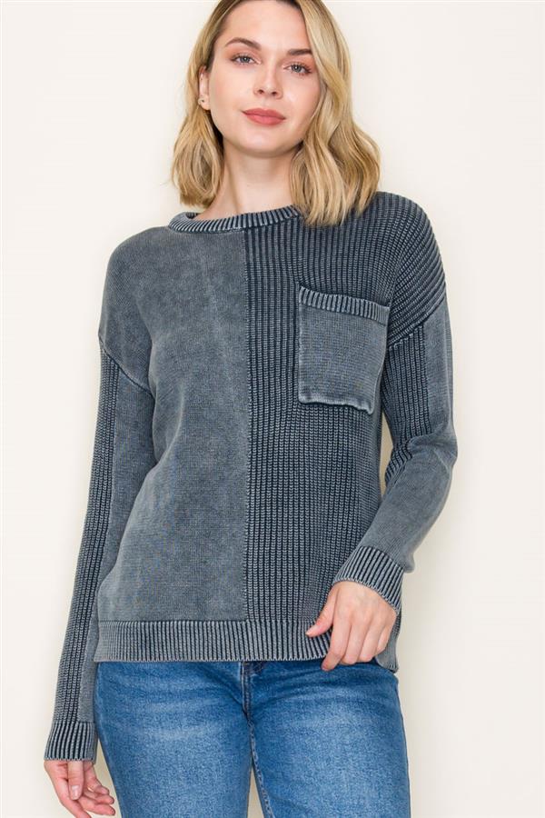 Chest Pocket Washed Yarn Sweater, Gun Metal | Staccato - SALE