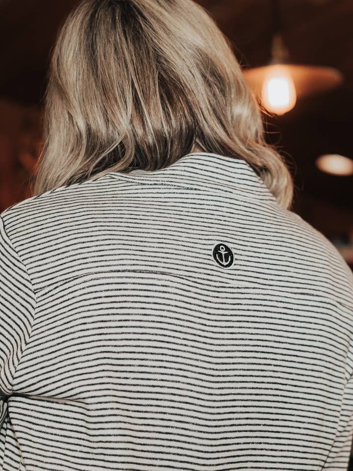 French Terry Stripe 1/4 Zip, Navy | Lakegirl