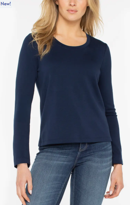 Long Sleeve Scoop Neck Top, Dark Navy | Liverpool