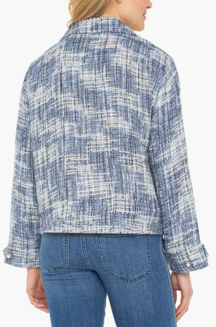 Pearl Button Front Boxy Tweed Jacket, Blue Multi | Liverpool Los Angeles