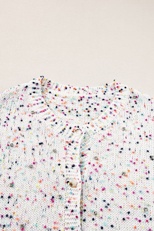 Rhinestone Multicolor Confetti Sweater Cardigan, White