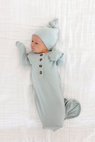 Unisex Baby Knotted Tie Sleep Gown, Bailey Aqua Ribbed | Lou Lou & Company