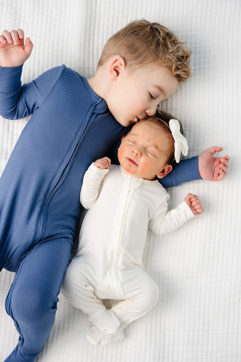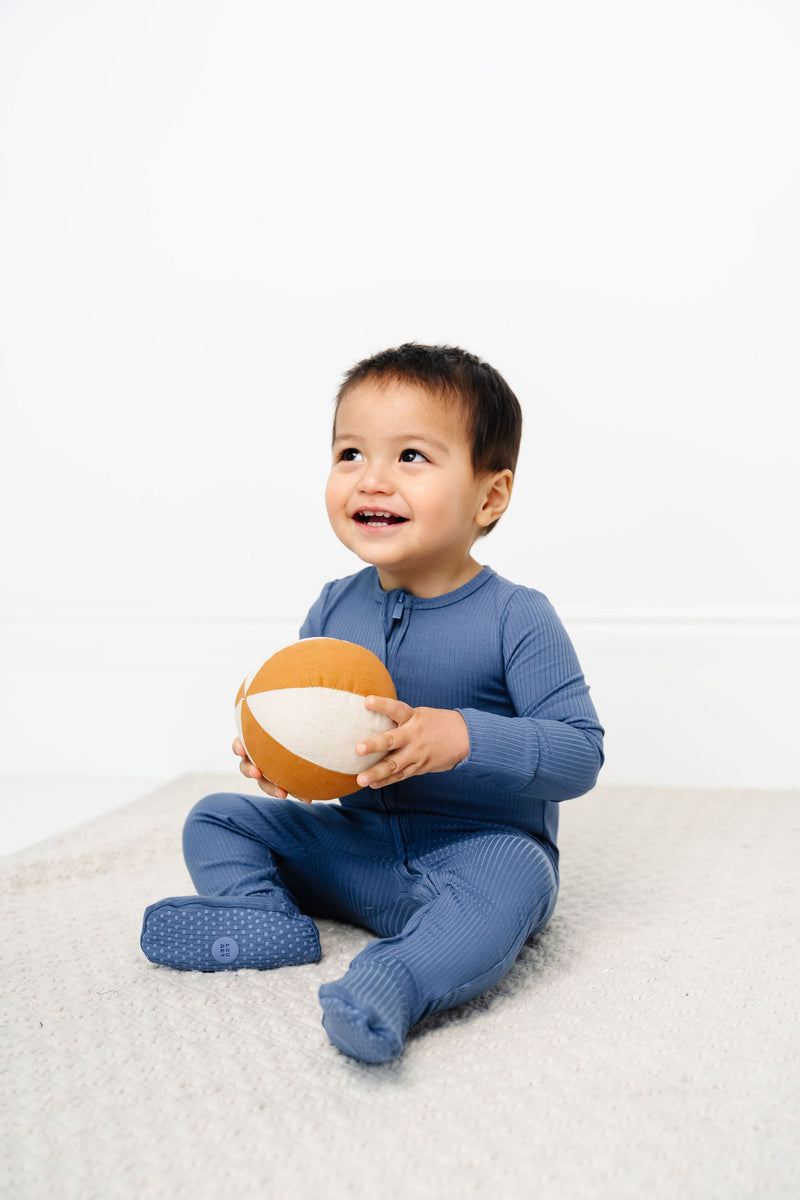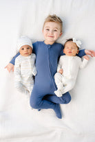 Baby & Toddler Boy Zipper Footie Pajamas, Harrison Blue Ribbed | Lou Lou & Company