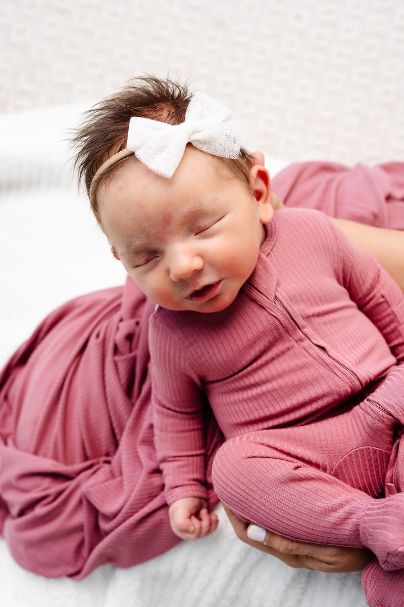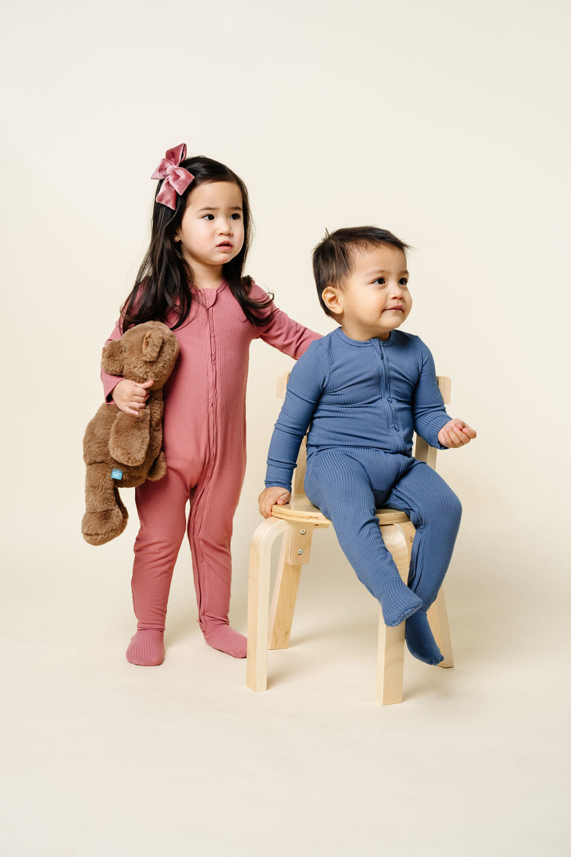 Baby & Toddler Girl Zipper Footie Pajamas, Marjorie Pink Ribbed | Lou Lou & Company