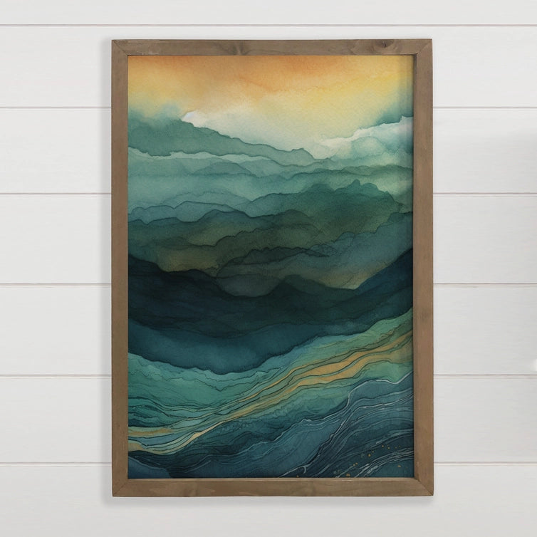 Ombre Blue Gold Mountains, Wood Frame 20x30
