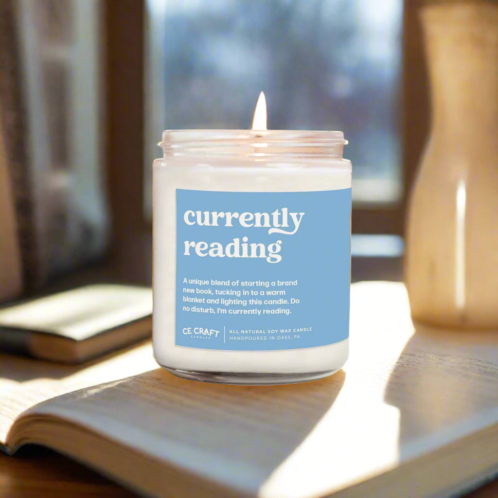 Currently Reading Candle, 8 oz | Book Gifts, Glass Candle with Metal Lid