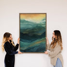 Ombre Blue Gold Mountains, Wood Frame 20x30