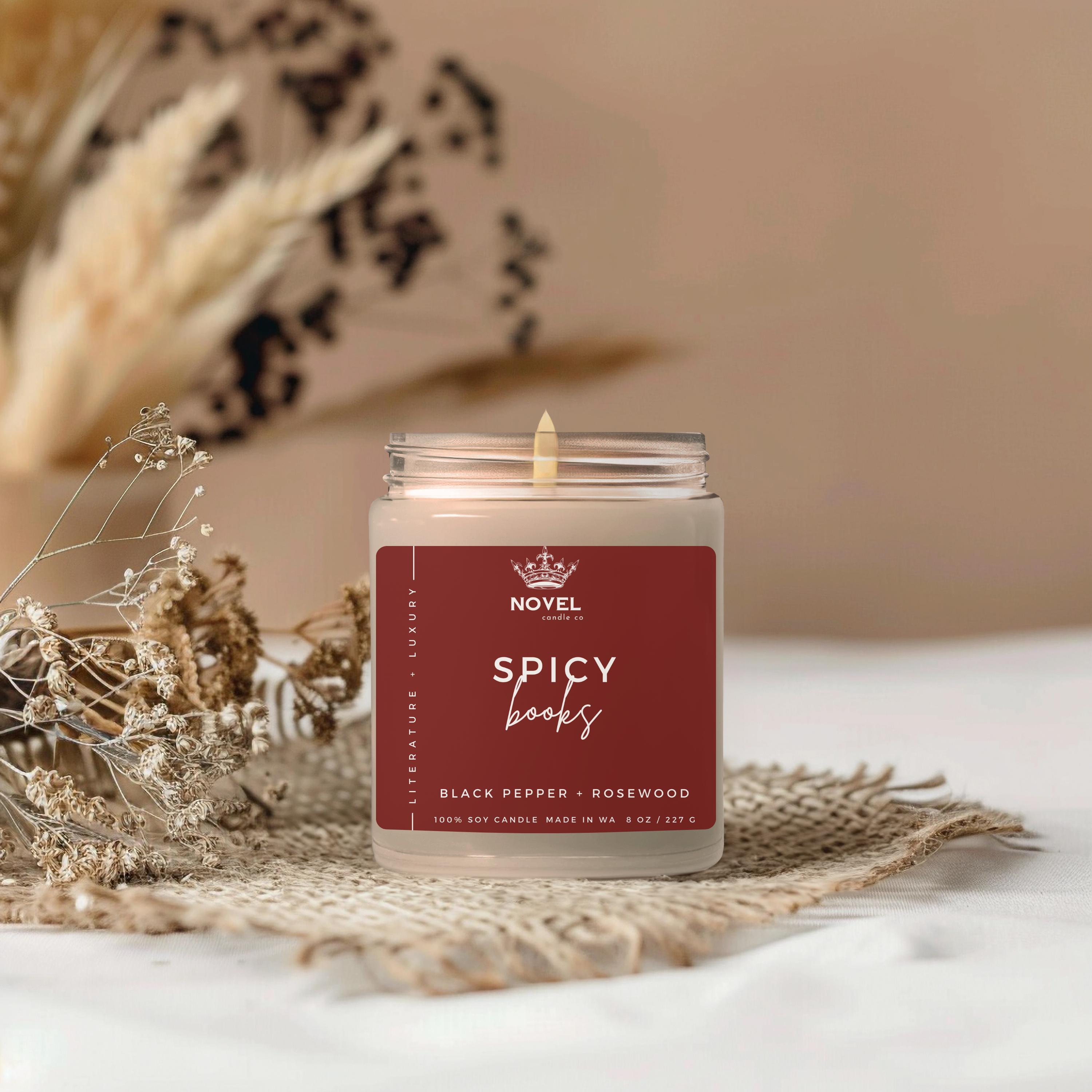 Spicy Books Candle, 8 oz | Book Gifts, Glass Candle with Metal Lid