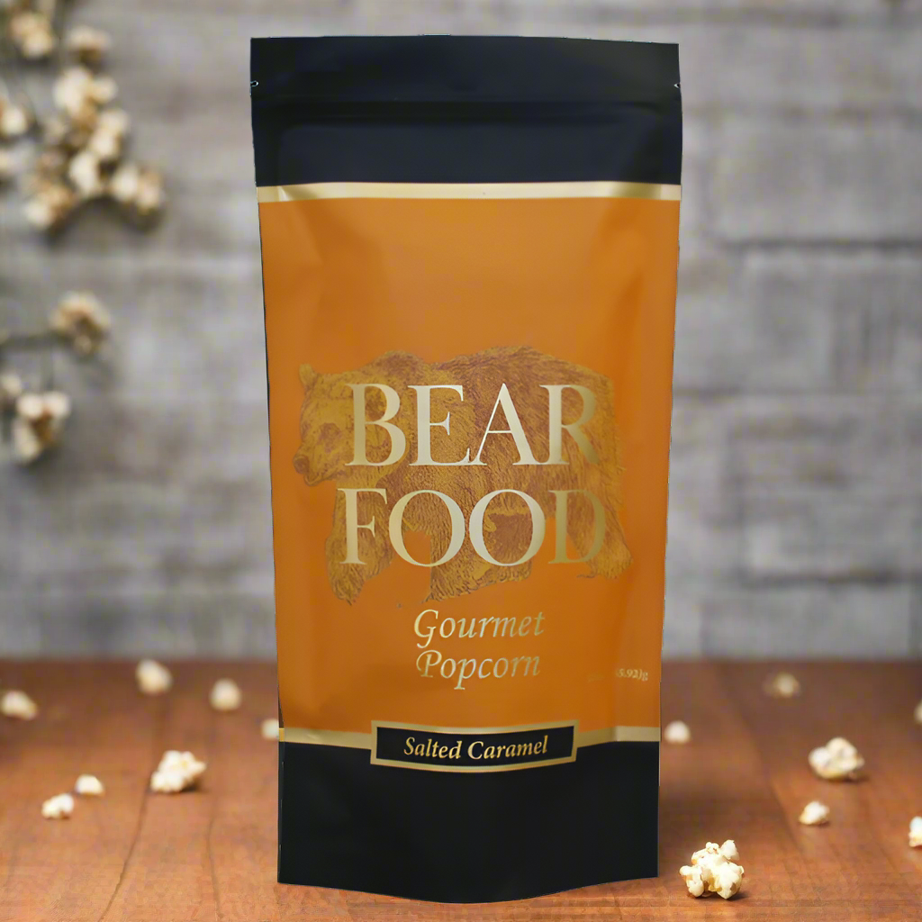 Satisfy your craving with Bear Food's Salted Caramel Gourmet Popcorn Pouch. Enjoy the perfect combination of sea salt and classic caramel on large, fluffy kernels. Say goodbye to sticky teeth and hello to pure indulgence.