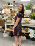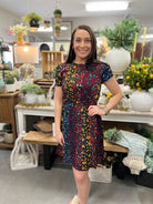 This multicolored floral dress is the perfect thing for all seasons. Paired with sandals, you are wedding ready. Paired with tennis shoes, you're ready for whatever adventure comes your way! The elastic waist and flowy fabric make this lovely dress easy to wear.