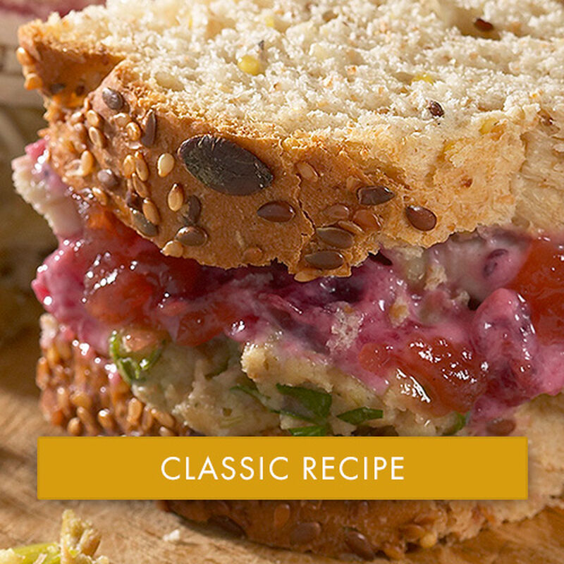 - Top with Hot Pepper Cranberry Jelly, another slice of bread, cut in half and serve.
