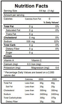 Ingredients: Unrefined sea salt, organically-grown lemon and lemon extracts, natural flavor and color