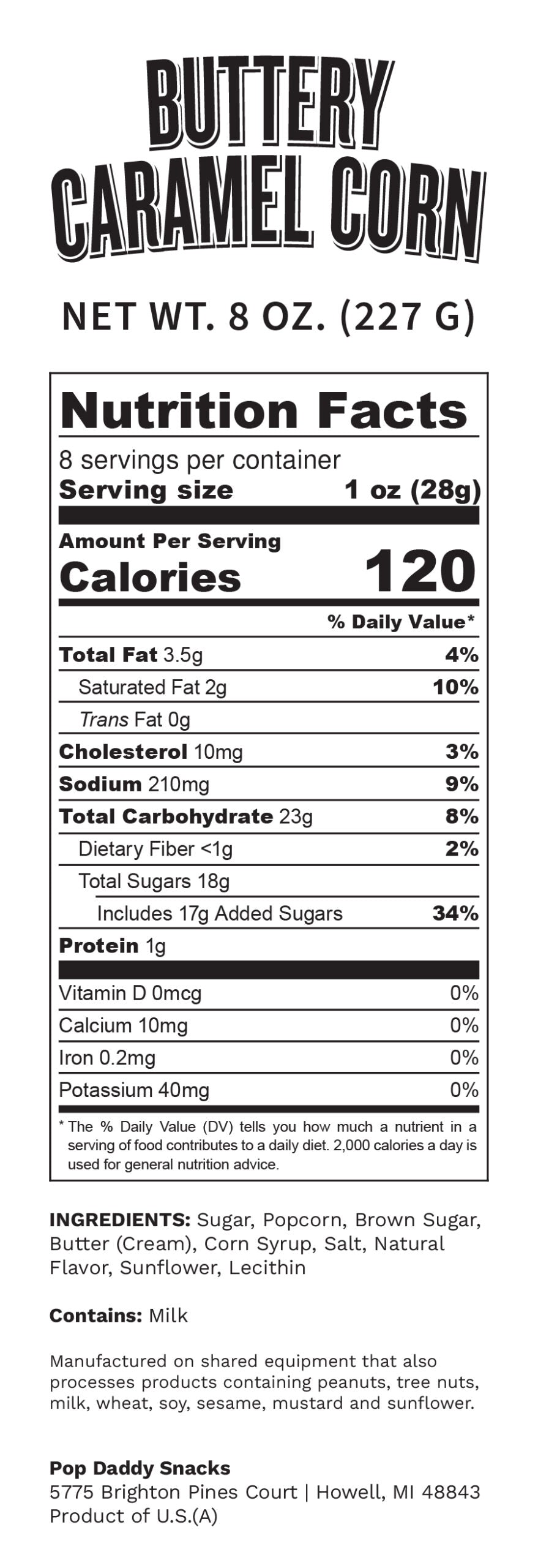 Savor the pure delight of Buttery Caramel Corn from Pop Daddy, where every kernel is a masterpiece of flavor.